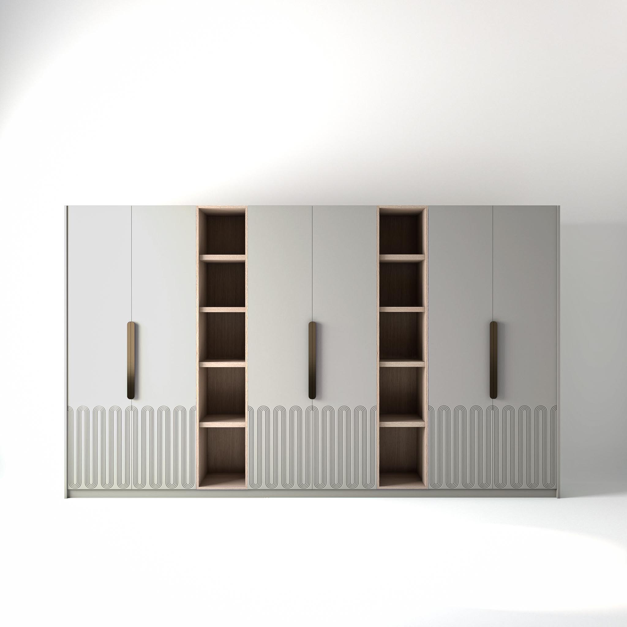 Design your own wardrobe online with On-Trend. Imagine your bedroom transformed into a serene sanctuary with the stunning 3.6m Geo Miami Wardrobe. Its captivating organic wave pattern, customizable in a palette of calming neutrals, awaits your online design touch. Create a unique piece that reflects your style, choosing from crisp white, calming grey, warm blush, or even exploring beyond with the “Paint Yourself” option.